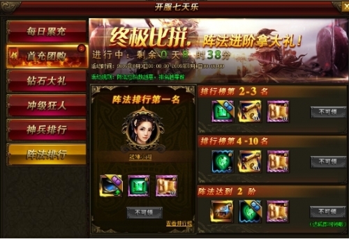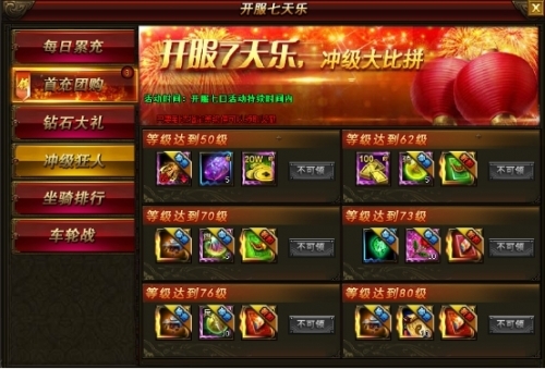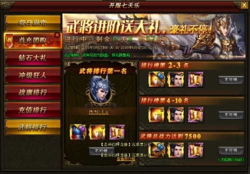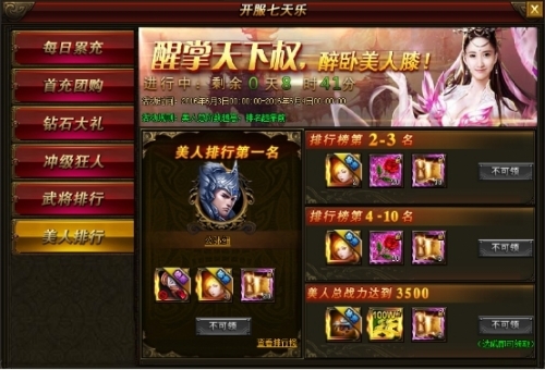 活动内容:活动期间,无论是坐骑、武将、美人还是战力,等级,只要您在规定时间达到条件均可获得超丰厚奖励!达到第一更有巅峰奖励!只要热爱,我们送您高值奖励!