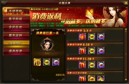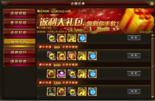 最后一档参与奖励,参与满足消费100元宝即可立刻领取,每天可以领取一次