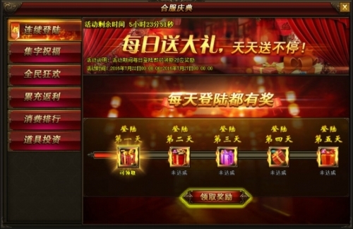 活动时间:合服第一天到第五天