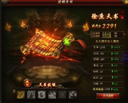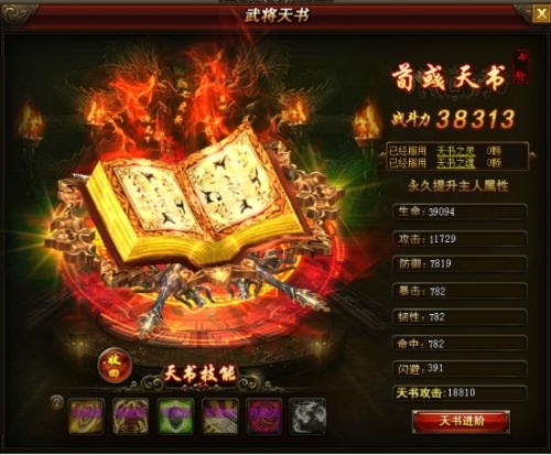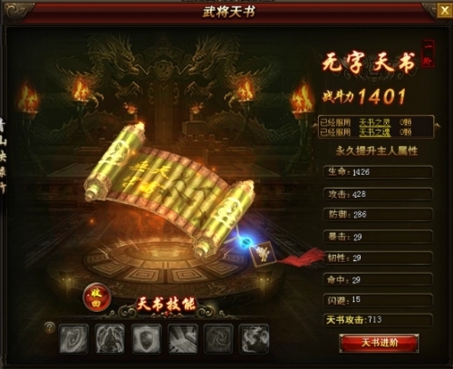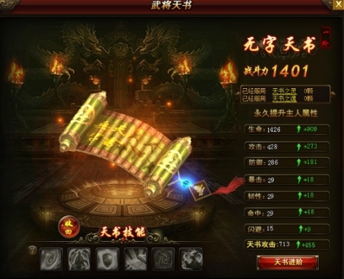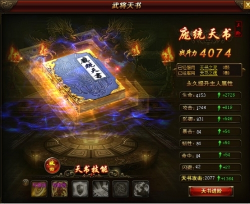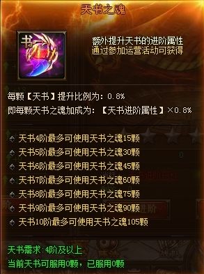 天书可以服用天书之魂来提升天书属性。