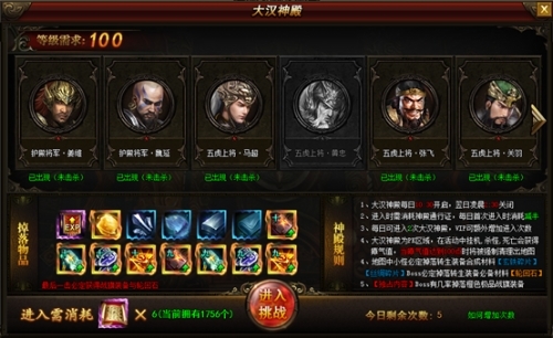 3、每日可进入2次大汉神殿,VIP可额外增加进入次数