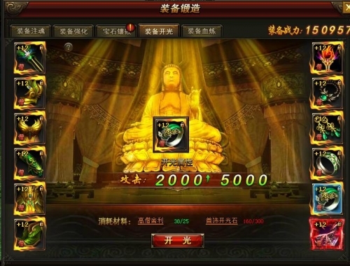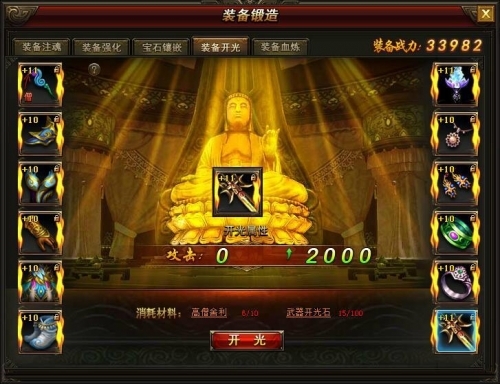 1、只有达到橙色品质的装备并且强化等级10级的可以进行开光操作