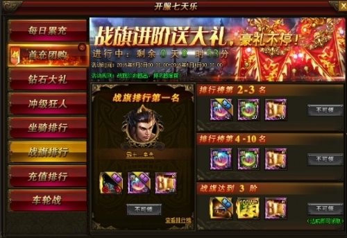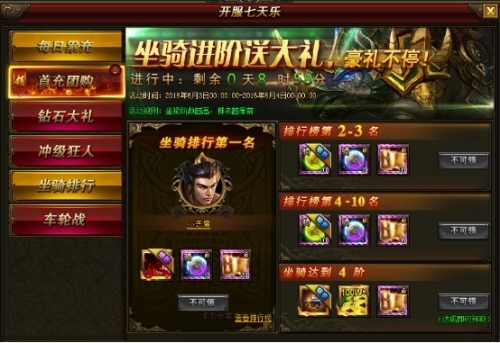 活动内容:活动期间,无论是坐骑、武将、美人还是战力,等级,只要您在规定时间达到条件均可获得超丰厚奖励!达到第一更有巅峰奖励!只要热爱,我们送您高值奖励!